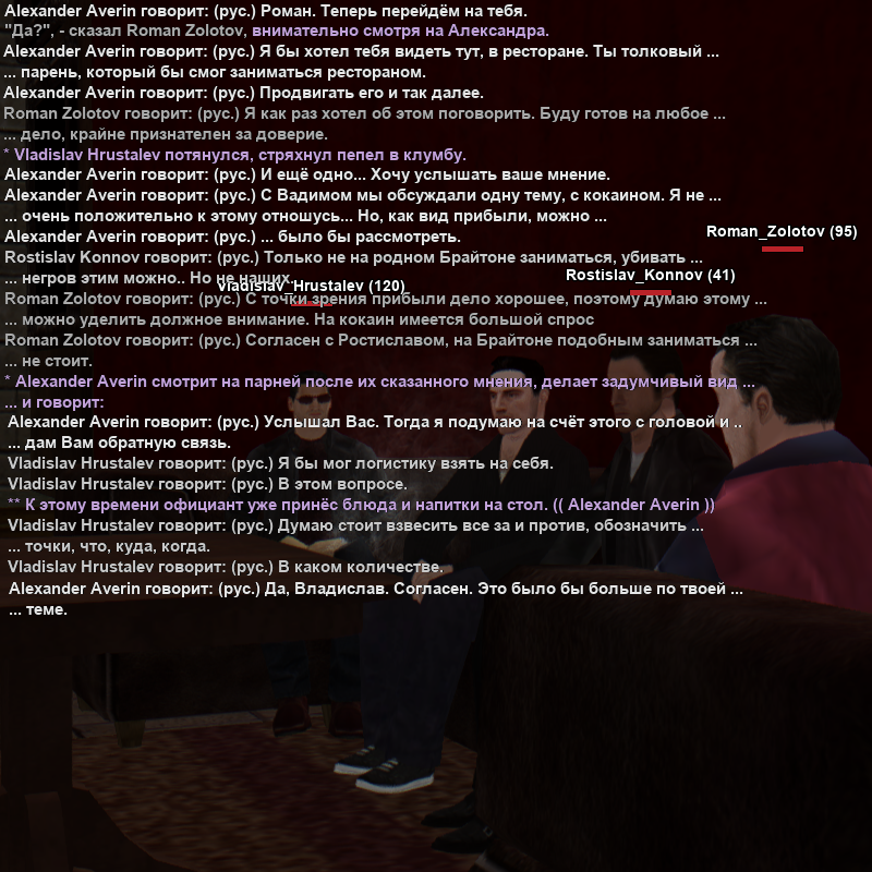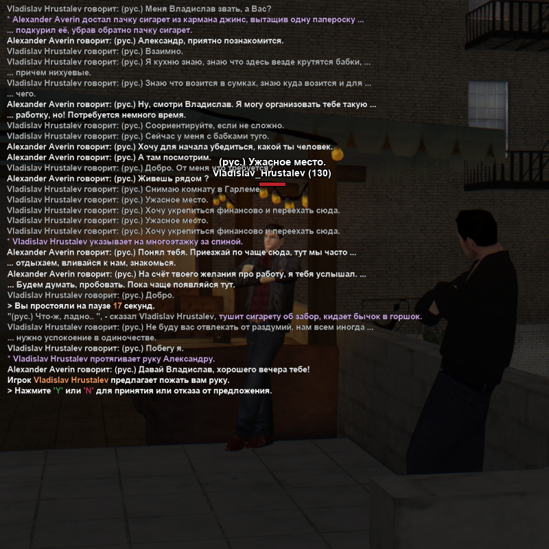 OOC: При взаимодействии с нами вы соглашаетесь на PK/CK/FCK на грубое отношение в вашу сторону, взаимодействие с вашем имуществом. Так же хотим не связывать игру и реальную жизнь, таить на кого-то обиды и тому подобное! Мы лишь делаем игровую атмосферу для нашего любимого NY TIMES :*